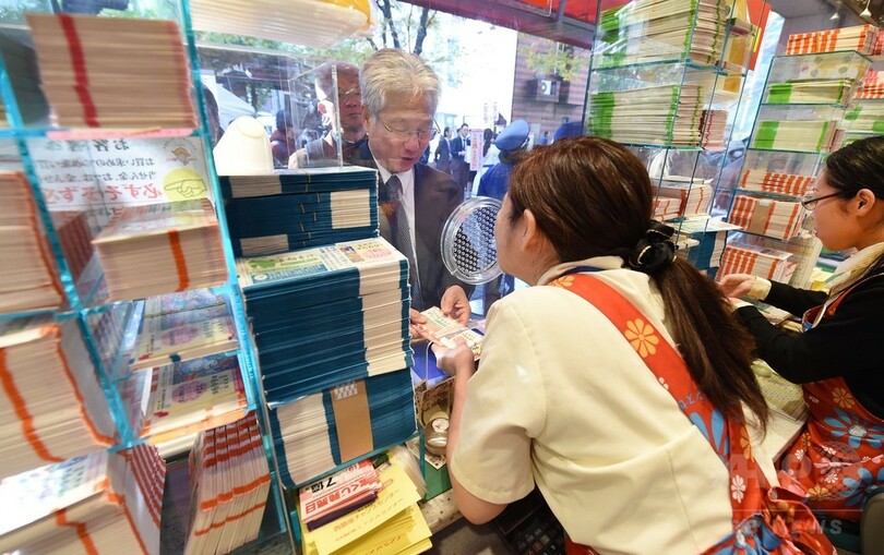 ニュース ライフ 年末ジャンボ宝くじ発売、当選を夢見て行列 2014年11月21日 16:54 発信地:東京 [ アジア・オセアニア 東京 ] このニュースをシェア ‹ › ❮ 3/5 ❯ 「年末ジャンボ宝くじ」が発売された都内の宝くじ売り場で、購入者の男性に宝くじ券を手渡す販売員の女性(2014年11月21日撮影)。(c)AFP/Toru YAMANAKA 画像作成中 ! 【11月21日 AFP】1等と前後賞合わせて7億円が当たる「年末ジャンボ宝くじ」が21日、全国で一斉に発売された。都内の売り場には、億万長者を夢見る人たちが長蛇の列を作った。(c)AFP ライフ 一覧へ> メディア・報道関係・法人の方向け 写真・動画 購入のお問合せ>