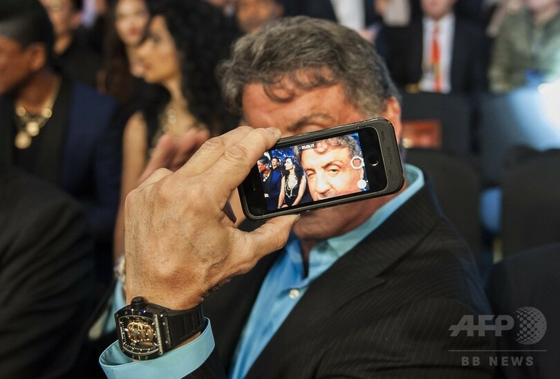 セルフィー掲げる有名人、この目は… ボクシング会場で