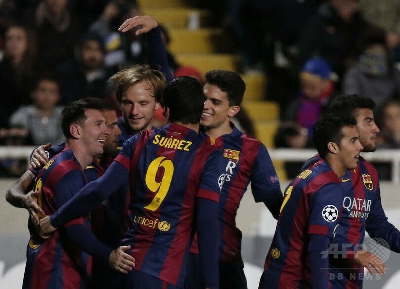 【11月26日 AFP】サッカー欧州チャンピオンズリーグ2014-15(UEFA Champions League 2014-15)は25日、グループリーグ第5節の試合が各地で行われ、グループFのFCバルセロナ(FC Barcelona)は4-0でアポエル・ニコシア(APOEL Nicosia)を下した。