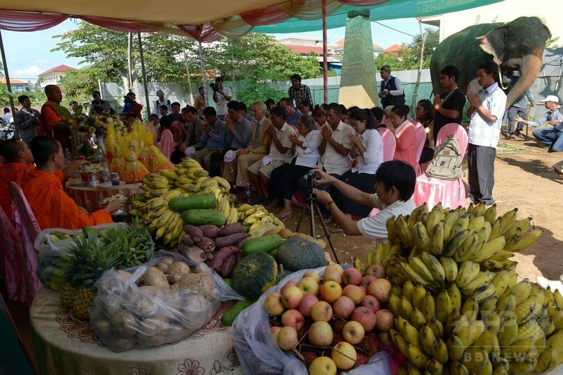 【11月26日 AFP】カンボジア・プノンペン(Phnom Penh)で25日、観光客らを背中に乗せて働いていた唯一のゾウの引退記念パーティーが開催された。
