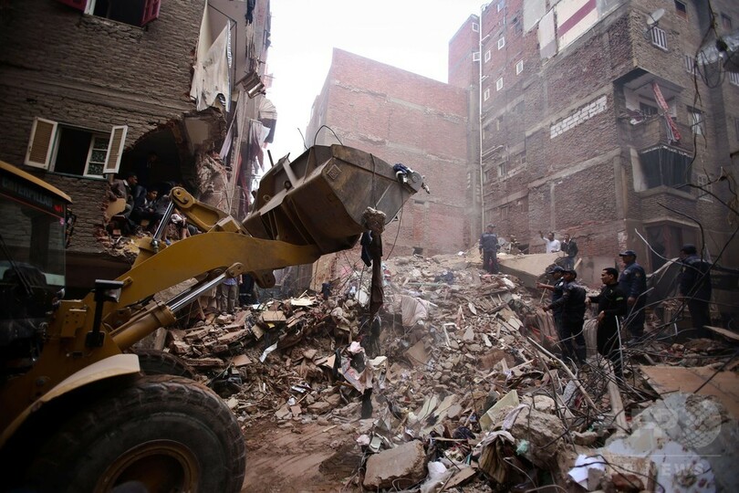 救急当局によると、人口2000万人を超えるカイロには基本的な建築規則に違反している建物が多く、中には建築許可を取得していないものも多数ある。倒壊したアパートの所有者らは、完成時に7階建てだった建物に無許可で2階分を増築していた。(c)AFP