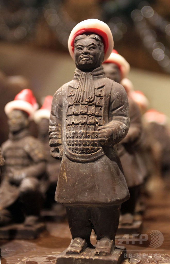 サンタの帽子かぶった「チョコ兵馬俑」、中国・陝西省