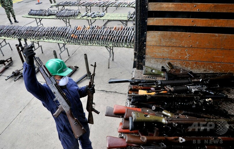 ニュース 社会 ゲリラから押収の銃器9500丁、建築資材として再利用へ 2014年11月26日 21:27 発信地:ソガモソ/コロンビア [ 中南米 コロンビア ] このニュースをシェア ‹ › ❮ 12/12 ❯ コロンビア・ボヤカ(Boyaca)州ソガモソ(Sogamoso)で、左翼ゲリラ「コロンビア革命軍(FARC)」と「民族解放軍(ELN)」から当局が押収した銃器の一部(2014年11月25日撮影)。(c)AFP/Guillermo LEGARIA 画像作成中 ! 【11月26日 AFP】南米コロンビアの当局は25日、左翼ゲリラ「コロンビア革命軍(FARC)」と「民族解放軍(ELN)」から押収した銃器9517丁をボヤカ(Boyaca)州ソガモソ(Sogamoso)で公開した。押収した武器は同地にある鉄鋼企業シデナル(Sidenal)の溶鉱炉で溶かされ、取り出された鉄や鋼鉄は、武力抗争が続く地域の学校や病院の基礎や柱の強化に使われる建築資材の生産に利用される。(c)AFP 社会 一覧へ> メディア・報道関係・法人の方向け 写真・動画 購入のお問合せ>
