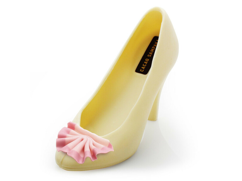 良質なカカオバターのみを使用し、すっきりとした甘みが特徴のハイヒール型ホワイトチョコレート。熟練した職人が一つ一つ手作りで仕上げた造形は美しく、特別な日の贈り物に最適。価格は5000円(すべて税抜)。