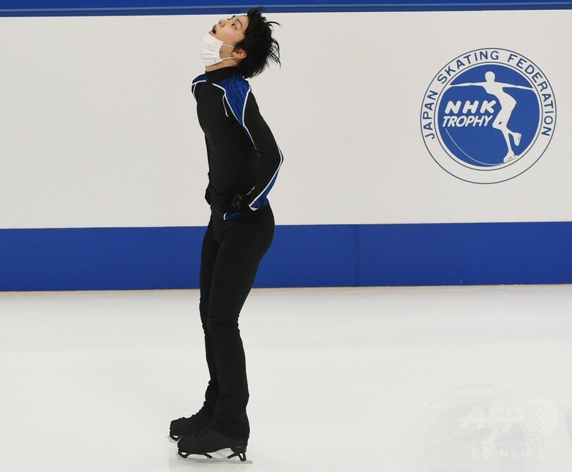 羽生はNHK杯で3位以内に入ることができれば、12月にバルセロナ(Barcelona)で行われるGPファイナルの出場が決まる。(c)AFP/Alastair HIMMER