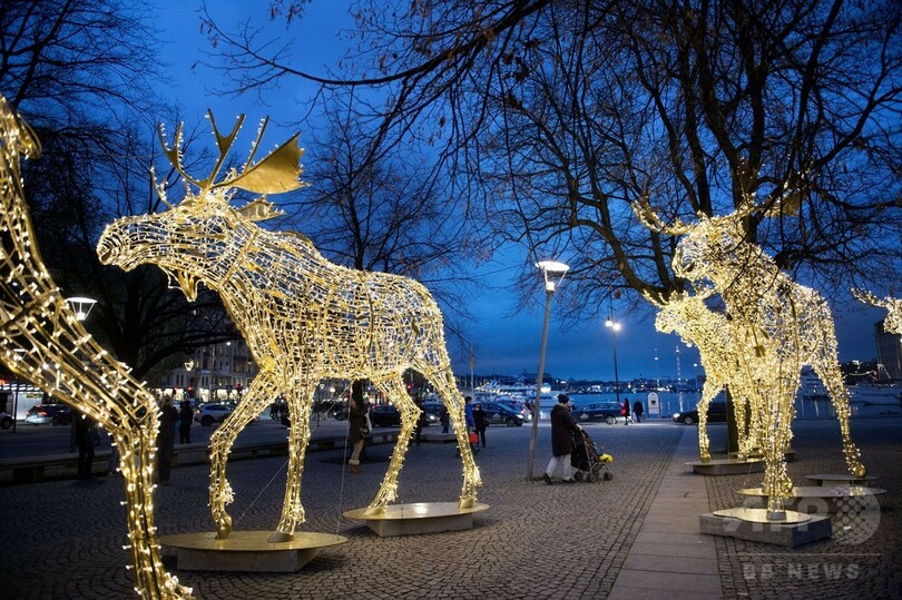 ニュース ライフ スウェーデンの首都に現れたLED電飾のヘラジカ 2014年11月29日 12:38 発信地:ニーブロプラン/スウェーデン [ ヨーロッパ スウェーデン ] このニュースをシェア ‹ › ❮ 1/2 ❯ スウェーデンの首都ストックホルム(Stockholm)中心部ニーブロプラン(Nybroplan)に設置されたヘラジカをかたどったLED電飾のイルミネーション(2014年11月22日撮影)。(c)AFP/TT NEWS AGENCY/JESSICA GOW 画像作成中 ! 【11月29日 AFP】スウェーデンの首都ストックホルム(Stockholm)中心部のニーブロプラン(Nybroplan)に飾られた、ヘラジカをかたどったLED電飾のイルミネーション。71万708個のLEDが使われている。(c)AFP ライフ 一覧へ> メディア・報道関係・法人の方向け 写真・動画 購入のお問合せ>