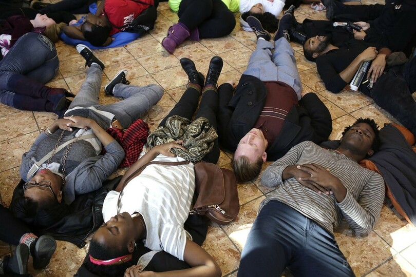 これに先立ち市民らはファーガソンの近くにあるショッピングモールをおよそ2時間にわたって営業停止に追い込んでいた。約100人のデモ参加者らが、感謝祭(Thanksgiving)後の買い物客でにぎわっていたショッピングモール「セントルイス・ガレリア(St. Louis Galleria)」で、年末商戦に加担しないよう訴えるとともに、武器を所持していなかったにもかかわらず射殺されたブラウンさんのために正義を要求。ブラウンさんが警官に撃たれてから4時間以上も路上に放置されたことを踏まえて、4分半にわたって一斉に床に寝そべった。