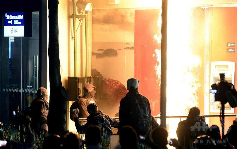 数千人の参加者は日中、エンリケ・ペニャニエト(Enrique Pena Nieto)大統領の辞任を要求するスローガンを叫び、黒く塗ったメキシコ国旗を掲げ、学生失踪に対する怒りをほとばしらせながら、メキシコ市の中央通りを行進していた。日が暮れると観光客に人気のあるレフォルマ大通り(Reforma Boulevard)で、覆面をしバットを持った一部の参加者が、銀行に火炎瓶を投げつけたり店のショーウィンドーを割ったりし始め、議会を警護していた機動隊数百人が鎮圧のために消火器を使って応酬した。