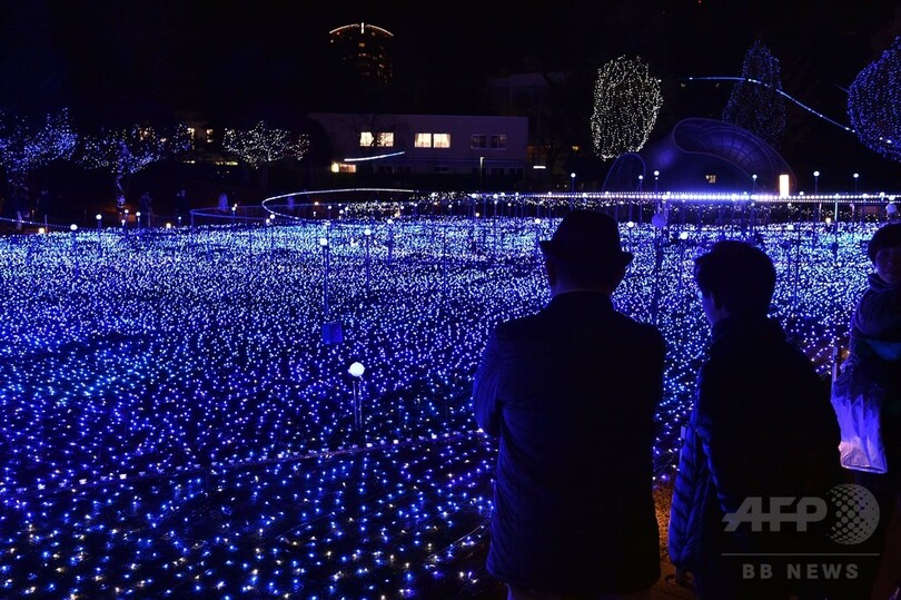 【12月3日 AFP】東京ミッドタウンを彩るイルミネーション。約18万個の青と白のLEDが使われた「スターライトガーデン(Starlight Garden)」やシャンパングラスと降雪のイメージを表現した「シャンパン・イルミネーション(Champagne Illumination)」など、様々なクリスマス・イルミネーションが買い物客の目を楽しませている。25日まで連日点灯。(c)AFP