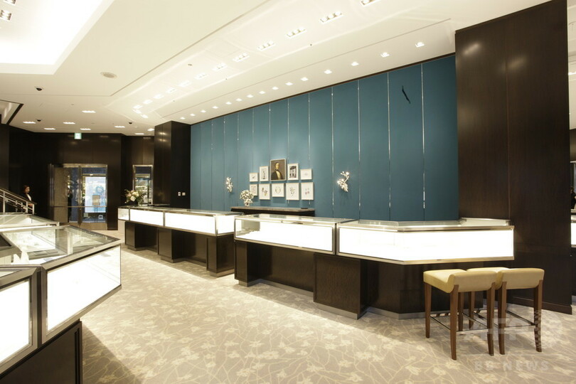 今回のリニューアルでは、1階のブティックスペースに加え、2階にラウンジスペースを新設。バーも備えた同スペースではゆっくりとショッピングを楽しめるほか、プロポーズやお祝いに贈るジュエリーなどを販売員に相談しながら選ぶことができる。