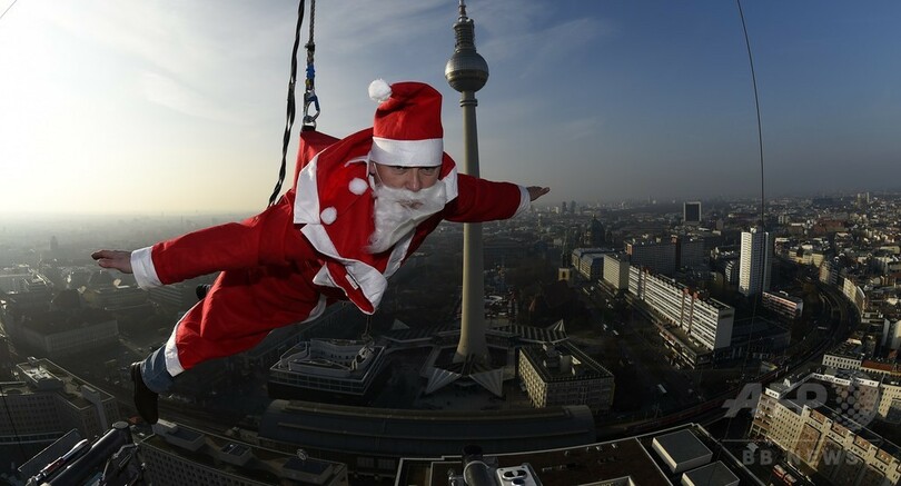 ニュース ライフ こぼれ話 サンタクロースがホテル屋上からジャンプ!独ベルリン 2014年12月7日 13:40 発信地:ベルリン/ドイツ [ ヨーロッパ ドイツ ] このニュースをシェア ‹ › ❮ 4/6 ❯ ドイツの首都ベルリン(Berlin)にあるホテルで、屋上から飛び降りるパフォーマンスを披露する前に、カメラに向かってポーズをとるサンタクロース姿の男性(2014年12月6日撮影)。(c)AFP/TOBIAS SCHWARZ 画像作成中 ! 【12月7日 AFP】ドイツの首都ベルリン(Berlin)で6日、サンタクロースに扮(ふん)したベースジャンパーが、ワイヤを身に着け、ホテルの屋上から飛び降りるパフォーマンスを披露した。(c)AFP ライフ 一覧へ> メディア・報道関係・法人の方向け 写真・動画 購入のお問合せ>