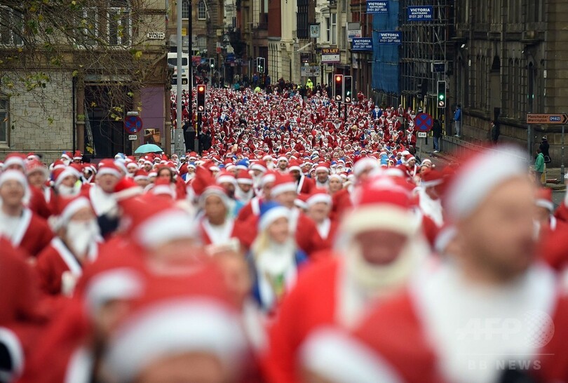 英リバプール(Liverpool)では「サンタダッシュ(Santa Dash)」が今年で10回目を迎え、地元プロサッカーチームのエバートン(Everton)のサポーターたちがライバルのリバプール(Liverpool FC)のチームカラーである赤と白の着用を拒否して青いサンタ衣装で走るおなじみの光景が見られた。