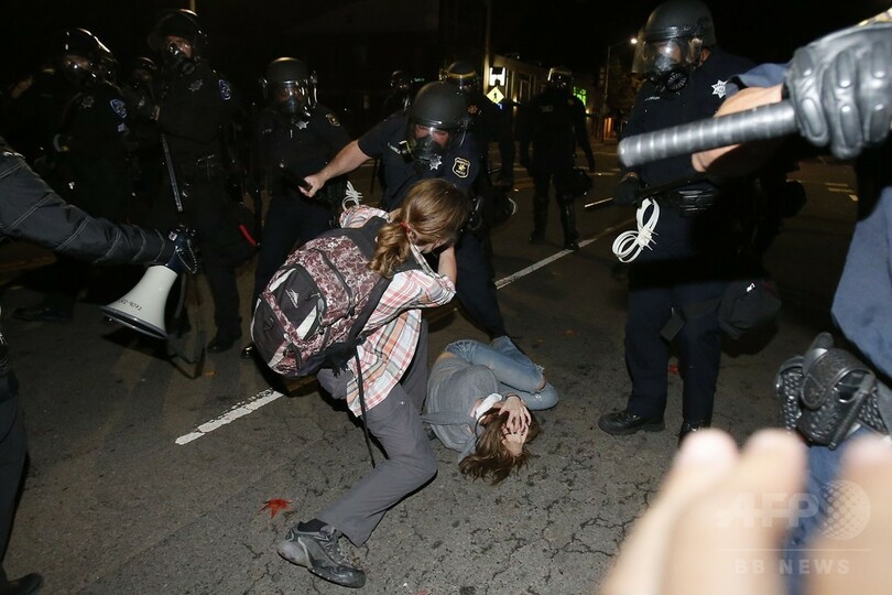 【12月8日 AFP】全米各地で白人警察官が黒人容疑者を死亡させる事件への抗議デモが続いている問題で、4夜連続でデモが行われたカリフォルニア(California)州バークレー(Berkeley)では6日夜から翌7日未明にかけ、暴徒化したデモ隊の一部が警察と衝突した。