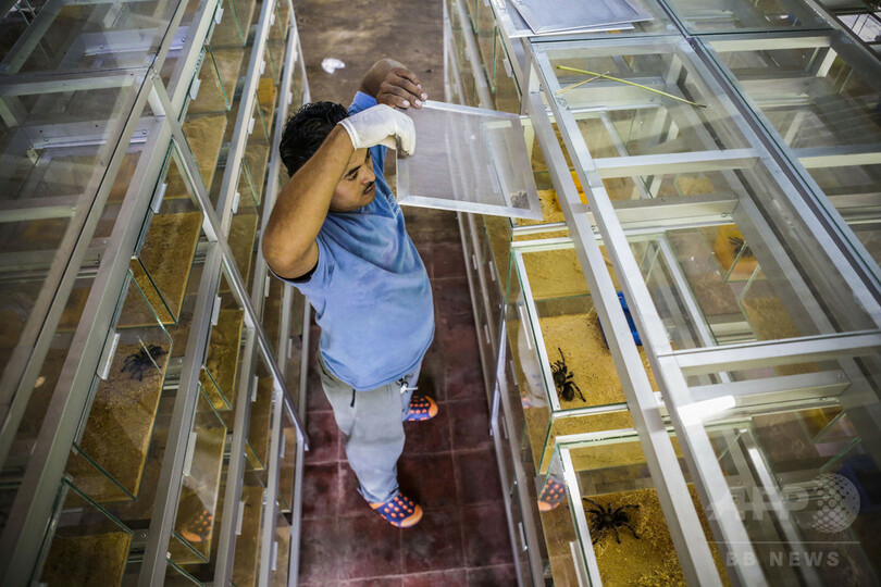 環境省の認可を受け、同社はおがくずを入れたガラスケースの中で、7000匹のタランチュラを飼育している。「蛇より高く売るつもりだ」と、同社のオーナー、エドゥアルド・ラカヨさんは言う。