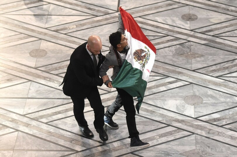 ノーベル授賞式に男乱入、メキシコ国旗掲げる