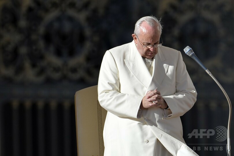 【12月11日 AFP】バチカン市国のサンピエトロ広場(St Peter's Square)で10日、ローマ・カトリック教会のフランシスコ(Francis)法王が恒例の一般謁見中、法王の象徴である白い帽子を風に吹き飛ばされてしまうハプニングが起きた。