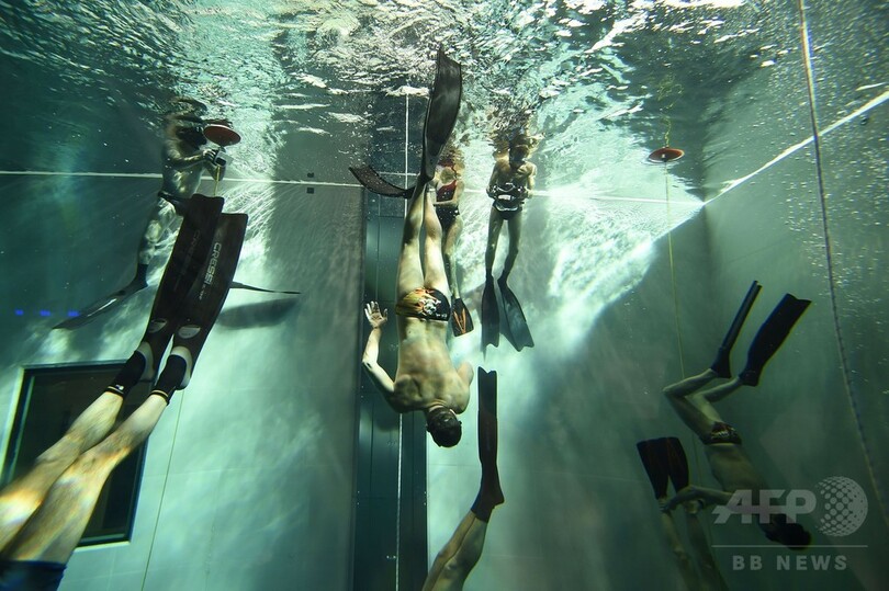 常時32度~34度の温水が張られているこのプールは、世界一深いプールとしてギネス世界記録(Guinness World Records)にも認定されており、フリーダイビングやスキューバダイビングのために利用されている。(c)AFP