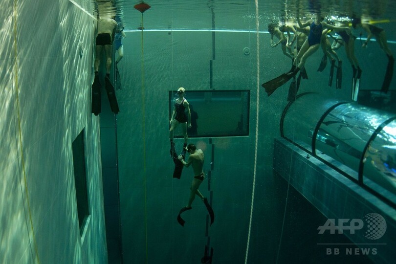 常時32度~34度の温水が張られているこのプールは、世界一深いプールとしてギネス世界記録(Guinness World Records)にも認定されており、フリーダイビングやスキューバダイビングのために利用されている。(c)AFP