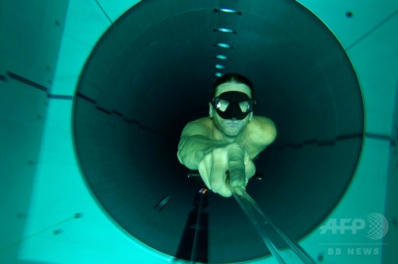 伝説のフリーダイバー、世界最深のプールでレクチャー 伊