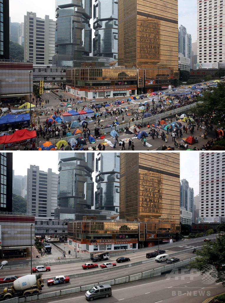 ニュース 政治・経済 香港デモ拠点の強制撤去、前後の写真 2014年12月12日 16:31 発信地:香港 このニュースをシェア ‹ › ❮ 4/4 ❯ 香港の民主派デモの最大拠点だった金鐘(アドミラルティ、Admiralty)地区の道路に残るテントやデモ参加者(上、2014年12月11日撮影)と、強制撤去により交通が回復した同じ道路(同12日撮影)。(c)AFP/ISAAC LAWRENCE 画像作成中 ! 【12月12日 AFP】香港(Hong Kong)で、2か月以上におよぶ民主派による街頭占拠デモの最大拠点となっていた金鐘(アドミラルティ、Admiralty)地区の11日と12日の写真。 上の写真は警官隊がデモの拠点を強制撤去するなか11日に撮影された。下の写真はその24時間後に撮影され、2か月ぶりに車の通行が戻った道路の様子が捉えられている。 警察当局は金鐘地区のデモの拠点を強制撤去し、デモの参加者多数を逮捕した。だが民主派の活動家らは今後も闘いを続けると宣言している。(c)AFP 政治・経済 一覧へ> メディア・報道関係・法人の方向け 写真・動画 購入のお問合せ>
