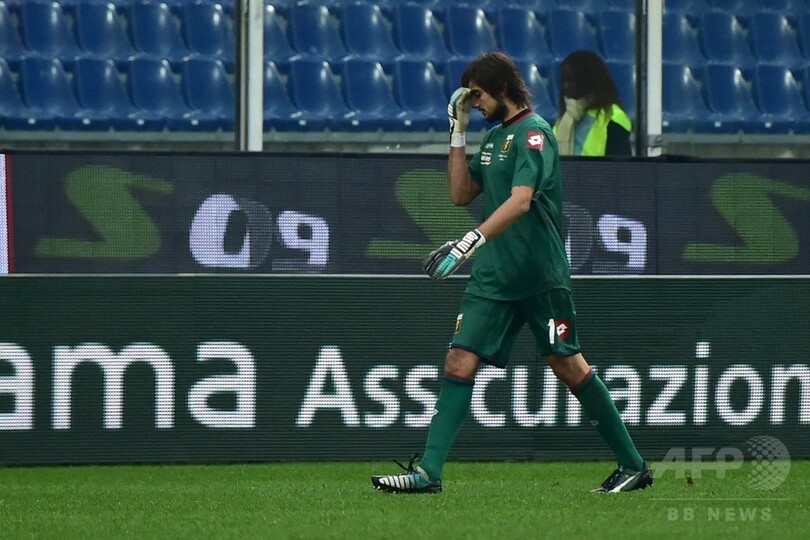 なお、ジェノアのガスペリーニ監督は、判定への異議でハーフタイム中に退席処分を命じられている。(c)AFP