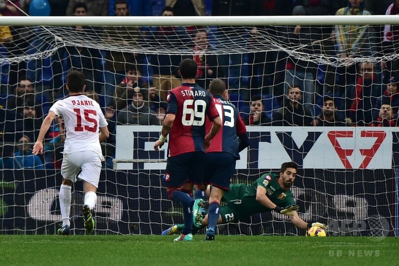 なお、ジェノアのガスペリーニ監督は、判定への異議でハーフタイム中に退席処分を命じられている。(c)AFP
