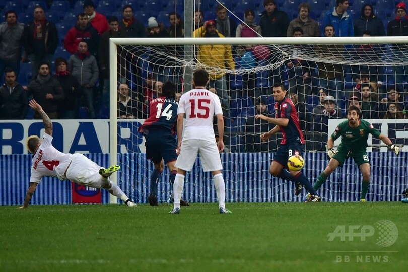 なお、ジェノアのガスペリーニ監督は、判定への異議でハーフタイム中に退席処分を命じられている。(c)AFP