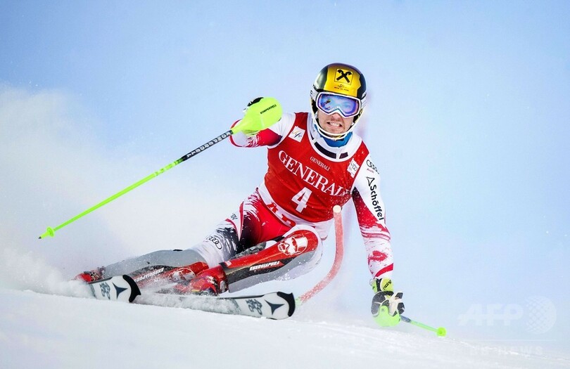 W杯通算26度目の優勝を飾ったヒルシャーは、オーストリアの伝説的選手フランツ・クラマー(Franz Klammer)氏の記録に並んだ。(c)AFP