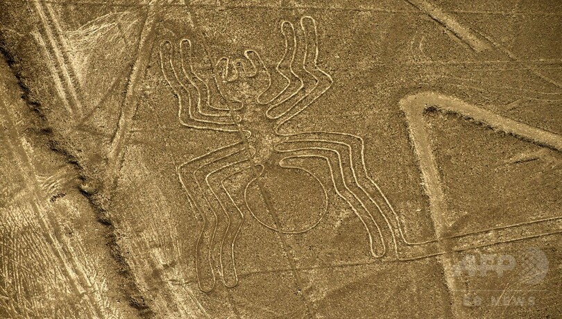 【12月16日 AFP】ペルーの首都リマ(Lima)から南へ435キロの場所にある世界遺産「ナスカの地上絵(Nazca Lines)」。500平方キロ近くにわたって広がる数々の地上絵は、周辺を取り囲む山々や航空機からしか一望できず、いまだ地上絵が描かれた目的は解明されていない。天上の神々に見てもらうため作られたという説もある。(c)AFP