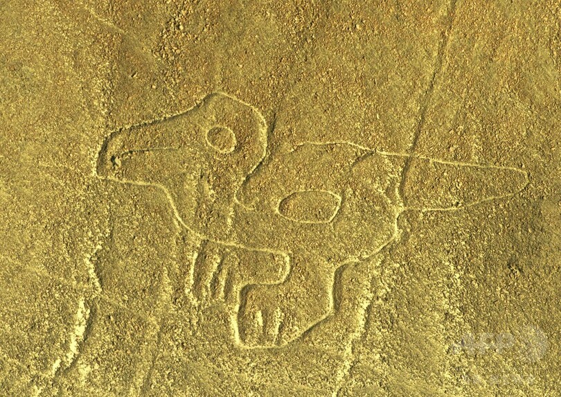 【12月16日 AFP】ペルーの首都リマ(Lima)から南へ435キロの場所にある世界遺産「ナスカの地上絵(Nazca Lines)」。500平方キロ近くにわたって広がる数々の地上絵は、周辺を取り囲む山々や航空機からしか一望できず、いまだ地上絵が描かれた目的は解明されていない。天上の神々に見てもらうため作られたという説もある。(c)AFP