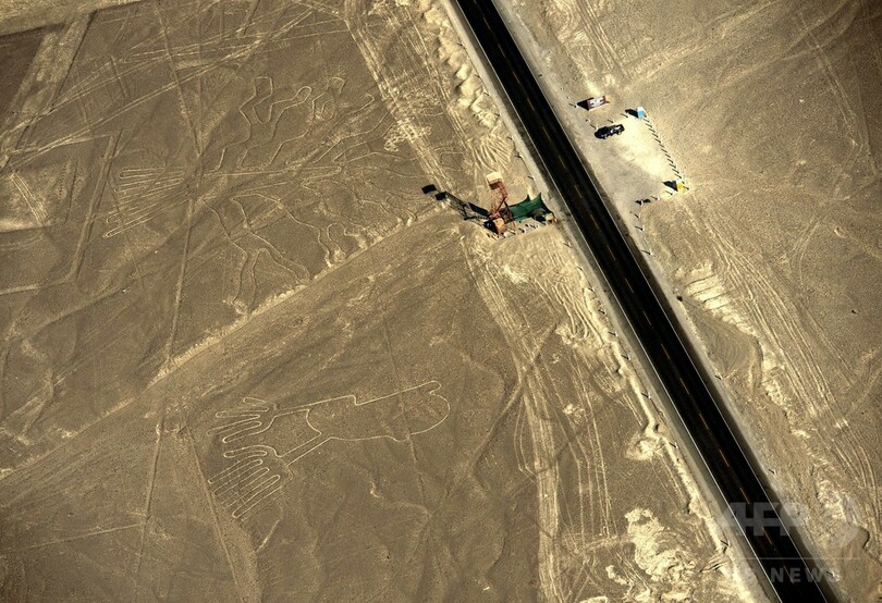【12月16日 AFP】ペルーの首都リマ(Lima)から南へ435キロの場所にある世界遺産「ナスカの地上絵(Nazca Lines)」。500平方キロ近くにわたって広がる数々の地上絵は、周辺を取り囲む山々や航空機からしか一望できず、いまだ地上絵が描かれた目的は解明されていない。天上の神々に見てもらうため作られたという説もある。(c)AFP