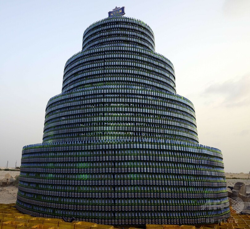 ビール瓶8000本、巨大クリスマスツリー完成、ナイジェリア