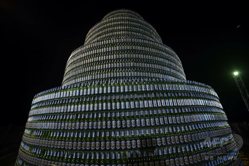 【12月19日 AFP】ナイジェリア・ラゴス(Lagos)に出現した巨大「ビール瓶ツリー」。同国のビール産業のパイオニア的存在であるナイジェリアン・ブルワリーズ(Nigerian Breweries)社のビール「スター・ラガー(Star Lager)」の瓶8000本使って完成した。スター・ラガーは初の国産ビールとして知られている。(c)AFP