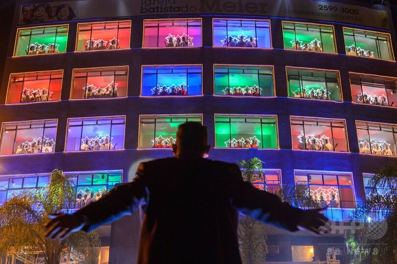【12月22日 AFP】ブラジル・リオデジャネイロ(Rio de Janeiro)で先週末、地元のバプテスト教会の聖歌隊によるコンサート「窓のクリスマス聖歌隊」が開かれた。4回目となる今年のコンサートでは、教会員およそ200人が通りに面した教会建物の窓24枚に並び立ち、地上の指揮者に合わせて歌声を披露した。(c)AFP