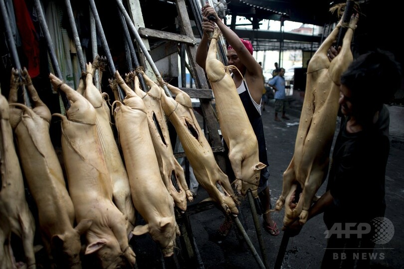 ニュース ライフ 豚の丸焼き「レチョン」作りたけなわ、フィリピン 2014年12月25日 9:05 発信地:マニラ/フィリピン [ アジア・オセアニア フィリピン ] このニュースをシェア ‹ › ❮ 8/10 ❯ フィリピン・マニラ(Manila)で、ブタの丸焼き「レチョン(Lechon)」を調理する作業員たち(2014円12月23日撮影)。(c)AFP/NOEL CELIS 画像作成中 ! 【12月25日 AFP】クリスマスシーズン真っただ中のフィリピン・マニラ(Manila)で、クリスマスや新年のお祝い事には欠かせないごちそうのブタの丸焼き「レチョン(Lechon)」作りがたけなわだ。フィリピンのクリスマスシーズンは1月の第2週まで続く。(c)AFP ライフ 一覧へ> メディア・報道関係・法人の方向け 写真・動画 購入のお問合せ>