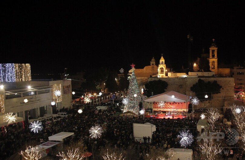【12月25日 AFP】イエス・キリスト(Jesus Christ)が生まれたとされるパレスチナ自治区ヨルダン川西岸(West Bank)の聖地ベツレヘム(Bethlehem)の聖誕教会(Church of the Nativity)で24日深夜、毎年恒例のクリスマスミサが行われ、多くの人々が集まった。(c)AFP