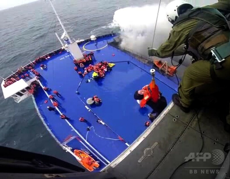 3か国から救助船が現場に到着する中、ギリシャ軍の複数の「シュペルピューマ(Super Puma)」ヘリコプターが救助にあたり、ブリッジから乗客をつり上げて、救助活動の調整に当たっているイタリア海軍の船に移した。同海軍報道官は「天候が非常に悪く、特別な水準の支援を必要とした」と述べた。