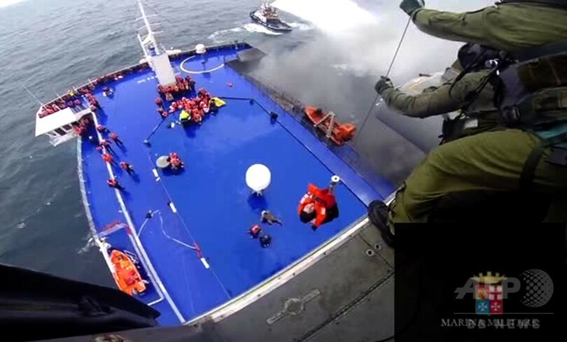 同号はギリシャのパトラ(Patras)からイタリアのアンコナ(Ancona)に向かっていたところ、ギリシャのコルフ(Corfu)島北西沖で出火。イタリア海軍によると、フェリーは現在、イタリア南部オトラント(Otranto)から40カイリ、アルバニア沿岸から13カイリの位置にあ