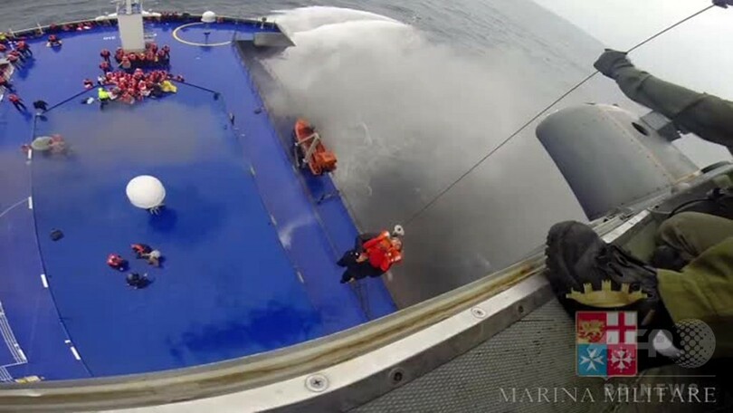 3か国から救助船が現場に到着する中、ギリシャ軍の複数の「シュペルピューマ(Super Puma)」ヘリコプターが救助にあたり、ブリッジから乗客をつり上げて、救助活動の調整に当たっているイタリア海軍の船に移した。同海軍報道官は「天候が非常に悪く、特別な水準の支援を必要とした」と述べた。