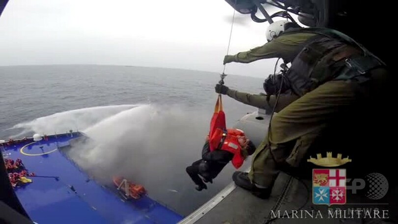 3か国から救助船が現場に到着する中、ギリシャ軍の複数の「シュペルピューマ(Super Puma)」ヘリコプターが救助にあたり、ブリッジから乗客をつり上げて、救助活動の調整に当たっているイタリア海軍の船に移した。同海軍報道官は「天候が非常に悪く、特別な水準の支援を必要とした」と述べた。