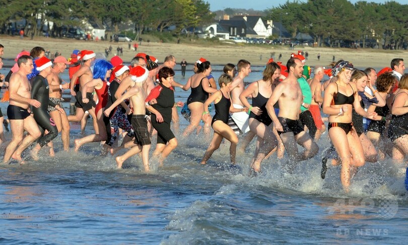 ニュース ライフ コスプレ姿も 仏で恒例の寒中水泳 2014年12月29日 15:49 発信地:フエナン/フランス [ ヨーロッパ フランス ] このニュースをシェア ‹ › ❮ 2/10 ❯ フランス・ブルターニュ(Brittany)地方フエナン(Fouesnant)の浜辺で、寒中水泳大会に臨む参加者たち(2014年12月28日撮影)。(c)AFP/FRED TANNEAU 画像作成中 ! 【12月29日 AFP】フランス・ブルターニュ(Brittany)地方フエナン(Fouesnant)の浜辺で28日、恒例のクリスマス寒中水泳大会が開催された。(c)AFP ライフ 一覧へ> メディア・報道関係・法人の方向け 写真・動画 購入のお問合せ>