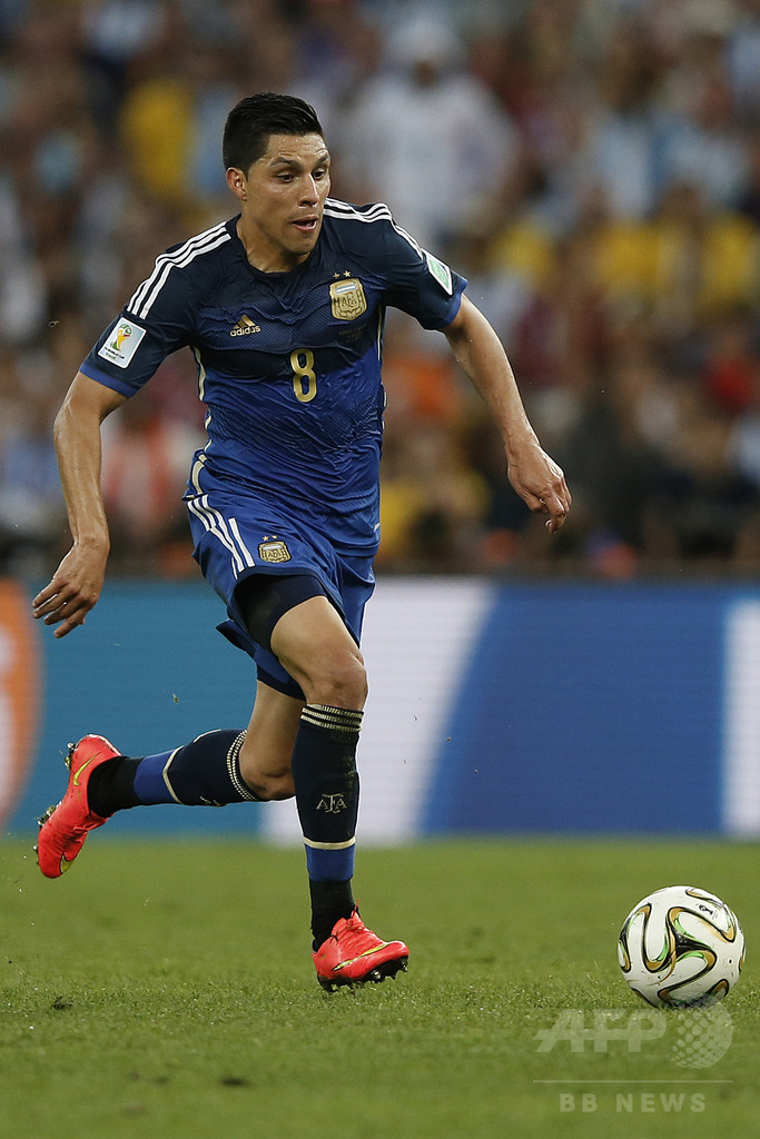 ペレスはアルゼンチン代表として通算15試合出場で1得点を記録しており、7月に行われたW杯ブラジル大会(2014 World Cup)決勝にも出場している。(c)AFP
