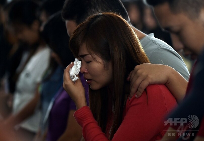 エアアジア機不明、祈る家族たち