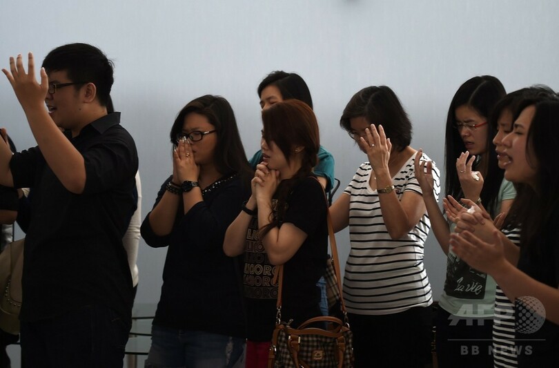 エアアジア機不明、祈る家族たち