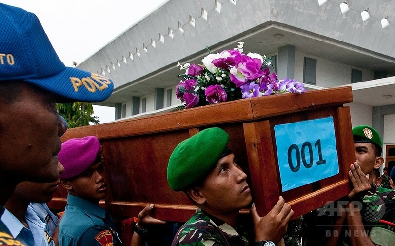 【1月1日 AFP】先月28日にインドネシアのスラバヤ(Surabaya)の空港からシンガポールに向かう途中で消息を絶ったエアアジア(AirAsia)QZ8501便の捜索で、ジャワ海(Java Sea)から収容された7遺体のうち最初の2体の棺が31日、同空港に帰還した。