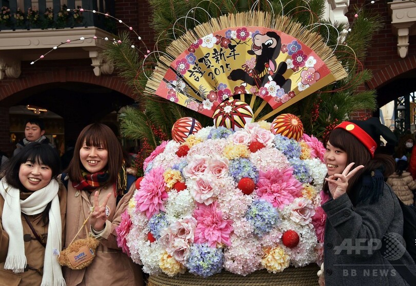 【1月1日 AFP】千葉県浦安市の東京ディズニーランド(Tokyo Disneyland)で1日、正月限定のパレードが行われ、和服姿のミッキーマウス(Mickey Mouse)とミニーマウス(Minnie Mouse)が来場者らと新年を祝った。(c)AFP