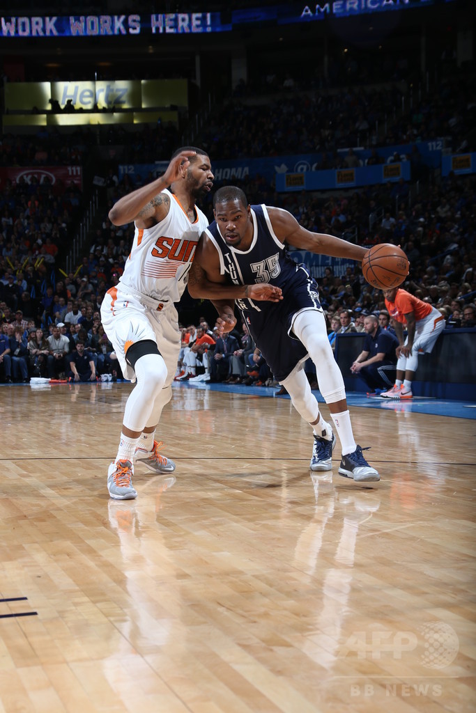 サンダーは右足首のねんざで最近6試合を欠場していた昨季のレギュラーシーズン最優秀選手(MVP)ケビン・デュラント(Kevin Durant)が、この試合で44得点を挙げる活躍をみせ、サンズとのオーバータイムを制した。
