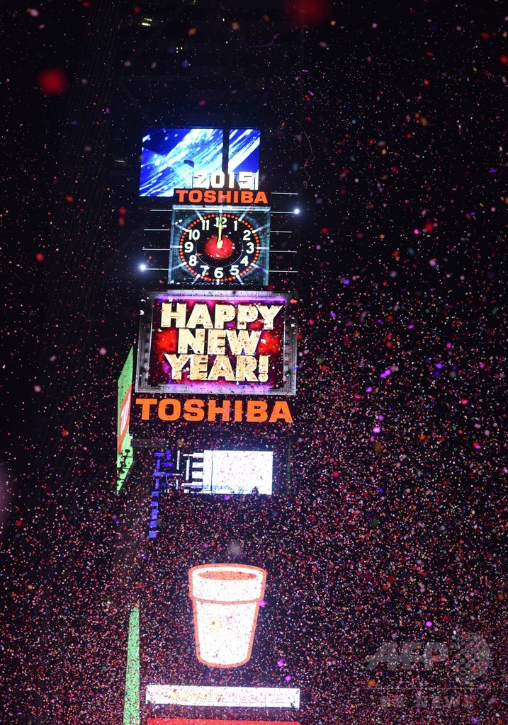 【1月1日 AFP】米ニューヨーク(New York)のタイムズスクエア(Times Square)で31日夜、毎年恒例のカウントダウンイベントが行われ、新年を迎えた瞬間に色とりどりの紙吹雪が舞い上がった。このイベントには世界中から約100万人が詰めかけた。(c)AFP