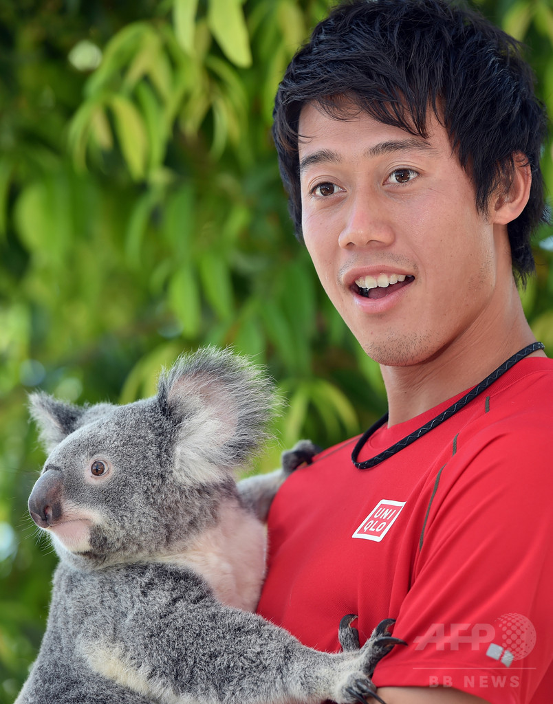 ブリスベーン国際出場の錦織がコアラとたわむれる