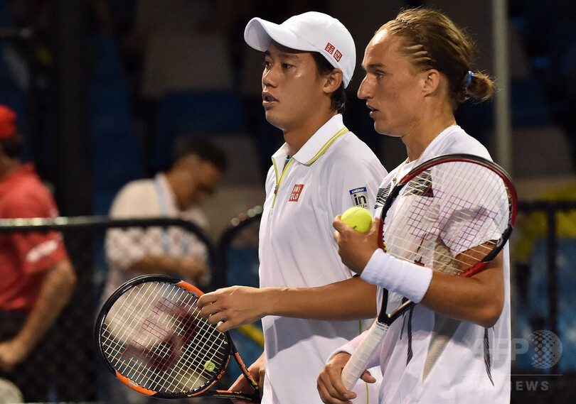 錦織は5日、ウクライナのアレクサンドル・ドルゴポロフ(Alexandr Dolgopolov)とペアを組んで、男子ダブルスに出場した。(c)AFP